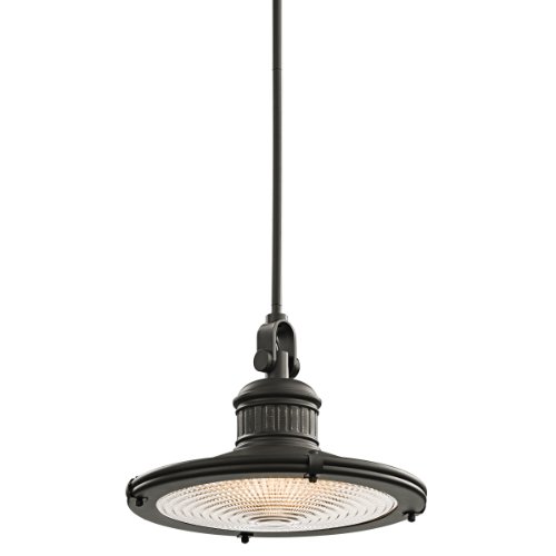The Detailed Description of Kichler Lighting 42438OZ 1-Light 100-Watt Sayre Incandescent Pendant with Fresnel Lens, Old BronzeFeatures