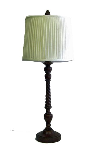 33-Inchh by 14-Inchw Burled Mahogany Finish Turned Column Table Lamp with Off White Silk Pleated Drum Shade. 150W, 3 Way socket. Turn Knob Switch.