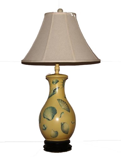 34-Inch Yellow and Blue Shells Porcelain Table Lamp. 150 Watt, 3-Way switch, Turn Knob Switch. Brass Hardware and Harp.