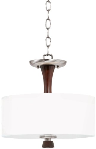 Triarch International 32701 The Brady Collection Semi-Flush Mount Convertible in a remarkable Brushed Steel finish with expresso colored wood and a White Drum Shade; This can also be hung as a Pendant Brushed Steel and wood Linem drum shade 2-75 Watt Medium base Bulbs not included UL Approved