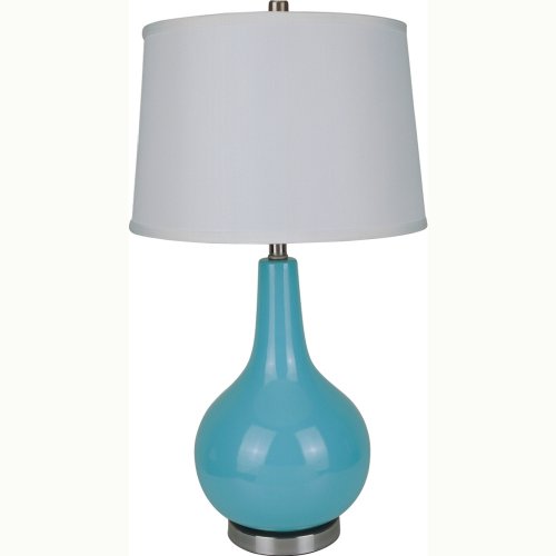 Hand fired ceramic table lamp body in a blue glaze has a great contemporary look. Ideal for bedside tables, buffets and side tables. A white linen shade adds to the appeal of the blue ceramic body. Takes one 150 watt three way bulb.