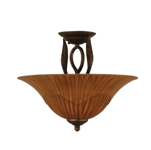 The Toltech Lighting 210-BRZ-58619 Leaf Three-Bulb Semi-Flush Mount Bronze Finish with Tiger Glass Shade, 16-Inch is a ceiling light that features a 16-Inch tiger glass shade. . Product dimensions (in Inch): 13.25 H by 16 W. Fixture requires 3 60-Watt medium base incandescent bulbs, not included. Product safety tested and approved by the UL/CUL in the US and Canada. Assembly required.