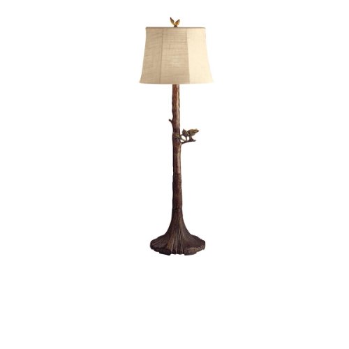 Turn your patio or deck into an outdoor living area with this outdoor table lamp. The fashionable lamp features a golden brown finish table lamp with a branch and bird accent. An oatmeal linen weather resistant shade sits on top for a rustic lodge design. A high/lo push switch gives you lighting versatility. UL listed for wet location. By Kichler.