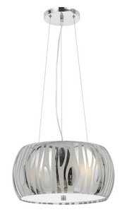 Contemporary pendant lighting fixture with a blend of silver and frosted glass shade.