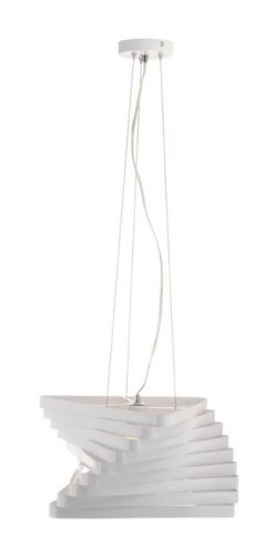 A triangular twisted sculpture of modern design. The Millennia ceiling lamp is painted steel that is adjustable for that perfect height. The lamp is UL approved.