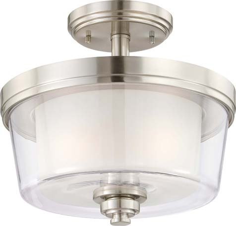Decker brushed nickel semi-flush drum with clear and frosted glass. (2) 60-Watt A19 medium base bulbs not included.