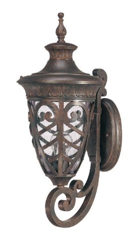 The Detailed Description of Nuvo 60/2053 Arm Up, Wall Lantern with Clear Seeded Glass, Dark Plum Bronze, Mid-SizeFeatures
