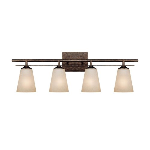 The Detailed Description of Capital Lighting 1739RT-131 Soho 4-Light Vanity Fixture, Rustic with Mist Scavo GlassFeatures