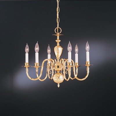 The Detailed Description of Thomas Lighting M2007-1 Colonial Six-Light 24-Inch W by 19-Inch H Chandelier, Solid Polished BrassFeatures