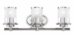 The Detailed Description of Designers Fountain 6693-CH Essence Three Light Bath Bar, Chrome Finish with Sand/Clear GlassFeatures