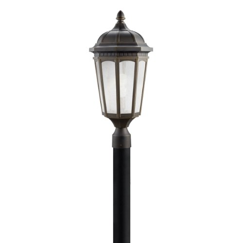 The Detailed Description of Kichler Lighting 11014RZ Courtyard 1-Light Fluorescent Outdoor Post Lantern, Rubbed Bronze with Etched Seedy GlassFeatures