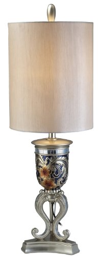 Ore International is a leading provider of innovative, high quality lighting fixtures, gift and furniture for the consumer market. Elegant design, great value and prompt service are hallmarks of Ore International. This cherry blossom style lamp is not an ordinary table lamp. The lamp base has a deep midnight blue background and two beautiful cherry blossoms for a distinct look. The many accents of the lamp give it a lovely feel, from a glass tile band that wraps around the body to the silver painted finish of the base. The taupe drum shade tops off this piece with an elegant look. Lamp uses one 60-Watt bulb. Measures 12-Inch x 12-Inch x 36-Inch and weighs 7-Pound. Made in China.