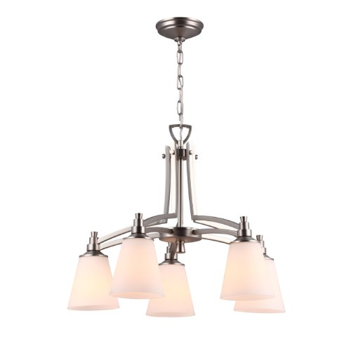 Finish:Buffed Nickel, Glass:Half Opal, Light Bulb:(5)100w A19 Med F Incand Georgetown Five Light Chandelier