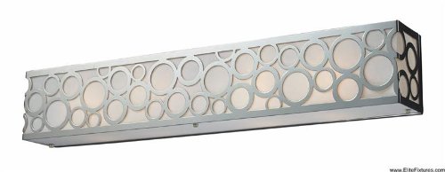 Elk Lighting 31023/4 Retrovia Vanity During the 1950s, there was a renewed sense of style and design from consumer products to fashion and beyond. This design movement coined the term "mid-century modern" which became a leading design movement. Finished in polished nickel, this collection embodies the excitement of the time period with laser cut circles, opal etched cylindrical glass, and a white diffuser that accents the drum and vanity fixtures. W:28" H: 5" E: 4" Polished Nickel