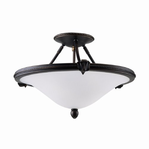 , Finish:Oil Rubbed Bronze, Glass:White Half Opal Glass, Light Bulb:(2)100w A19 Med F Incand Deco 2-Light Ceiling Semi Flush