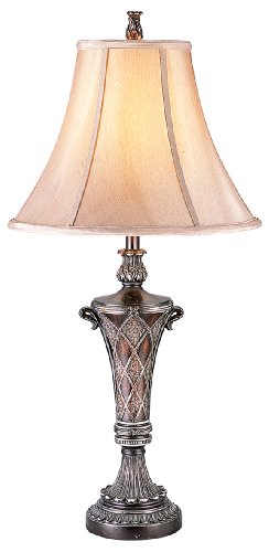 Ore International is a leading provider of innovative, high quality lighting fixtures, gift and furniture for the consumer market. Elegant design, great value and prompt service are hallmarks of Ore International. The antique style of this table lamp gives an old world design but with modern polyresin construction. The faux wood finish and painted metal allow the dramatic details to come through and the simple bell shade highlights the ornate detailed body. Lamp is UL listed and uses a 3-way 100-Watt type A bulb. Measures 16.5-Inch x 16.5-Inch x 33-Inch and weighs 5.3-Pound. Lampshade measures 16-Inch x 16-Inch x 12-Inch. Made in China.